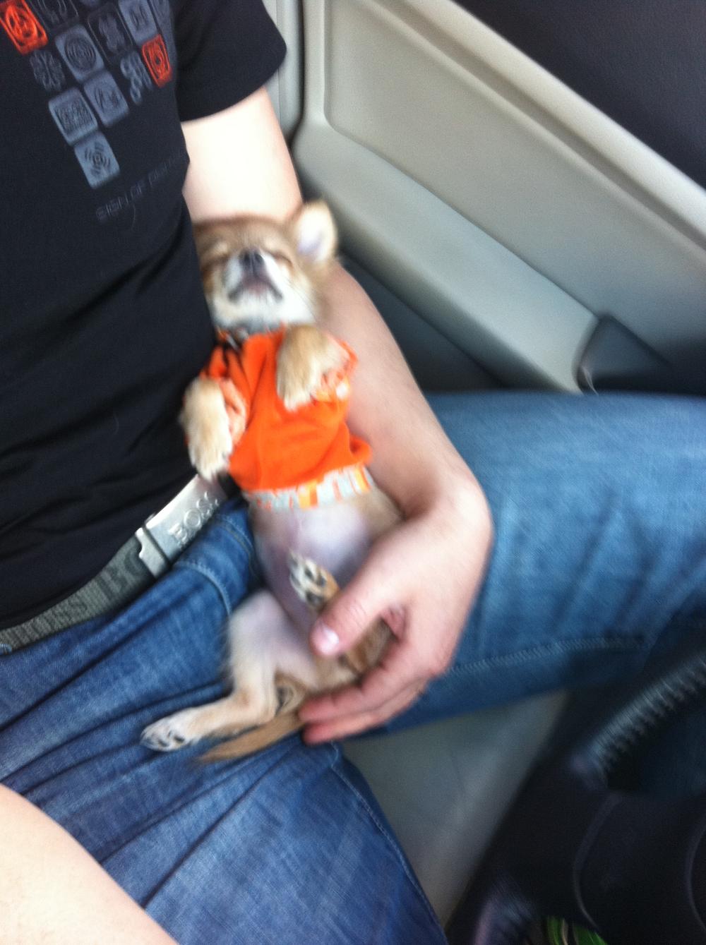 "мне сегодня четыре месяца! большой я, однако, уже стал. как то вытянулся, как угловатый подросток. пушок пропал куда-то. я больше не похож на хомячка)))). родители посадили меня в переноску и на велик. вот так вот на пикнике и отпраздновали мою днюху!!! теперь заношу все это в свой дневничекс !""