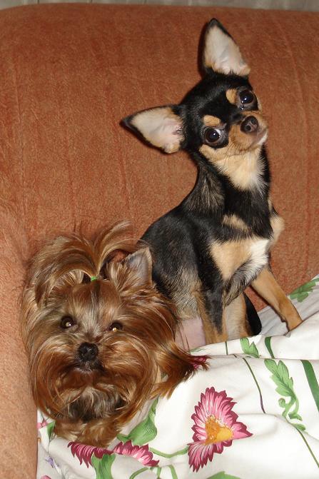 Мариш,мой вет вчера мне сказала уколоть гамавит с глюкозой и дать бифидобактерин,что мы и делали...Заводчик наш сказал:"если не ест корм,дайте что-нибудь повкуснее!",вот я курицу давала с рисом,а сегодня она уже слизью какает(Танюш,позвонила Лене твоей,она мне настучала по голове за то,что когда у собаки такое расстройство я её стала переводить на натуралку-самый неудачнейший момент!)А ещё я с ужасом обнаружила сегодня,что у неё то ли аллергия,то ли непонятно что-слой перхоти в миллиметр(!),вся кожа покрыта белым сухим слоем-налётом...Вообщем,разругалась в очередной раз со своей ветврачём-она кричит что вечно я покупаю больных собак и чтобы я немедленно отвезла её и отдала обратно,что это может быть и грибок и что-нибудь инфекционное,так что конечно никуда я её не отдам,а завтра поедем соскоб сделаем...Малявка ласковая,нализывает меня круглые сутки-в счастье,что мама дома,Фике понемножку начинает с ней играть-осторожно подходит и пытается мелкую потрогать лапой,а та сразу прыгает и пытается Фике тяпнуть за нос-отчего Фикеша делает совершенно ГЛУПОЕ ЛИЦО и не знает что делать с таким хамством-кусать нельзя,опрокидывать нельзя,игрушку забирать нельзя.....Но и спускать малявке такое поведение не хочется....