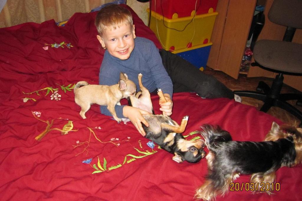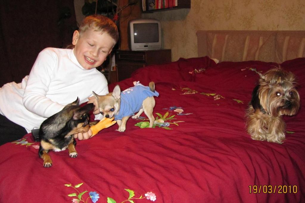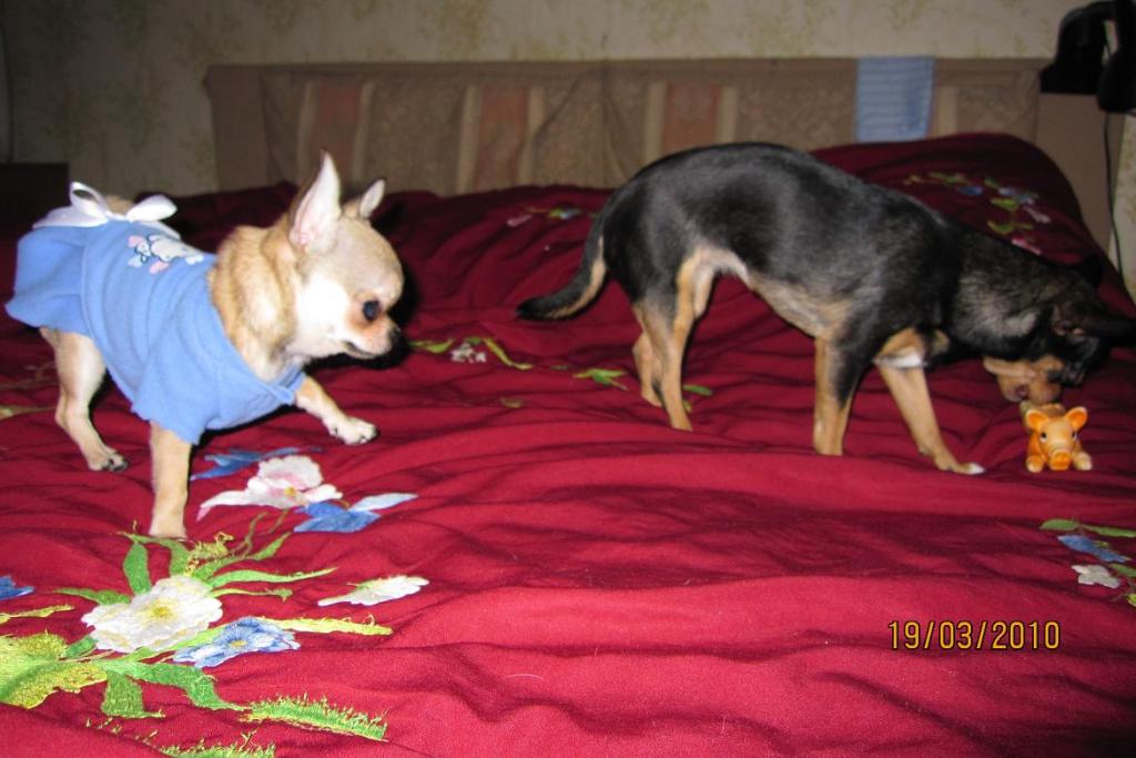Даже с проблемой туалета(по-прежнему ходит то в лотКИ-коих стоит четыре!-то мимо),и с грызением чего нипоподя(стоит кому-нибудь отвернуться и что-нибудь оставить)все это ерунда...Купила им книгу,как дрессировать,кормить,воспитывать чихуа...Посмотрим,КАК это у них получится...