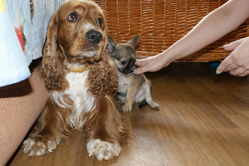 Здравствуйте, разрешите пополнить Ваши ряды любителей чишек. У нас появился парень в возрасте 2,5 месяцев, второй собакой. Сейчас нам 4,5. Зовут Эди и его теперь уже наверно старший брат английский кокер спаниель Альф.