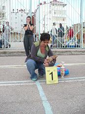 Сегодня у нас дебют участия в выставке !!!! И он удался !!! Мы заняли первое место на выставке в бэбиках !!! Ура!!! 1 место в вэст вэбби !!! Выиграли огромный мешок корма( чем очень обрадовали друга - Люффа и недруга - кошку Мафусика !!! Вазу , медальку ( почти раритет - там надпись СССР ), диплом о первом месте в вэст ...розетку и главное гордость хозяевам , за то что девочка у них есть !!! Произвели фурор своим появлением ( мы были самая маленькая соба выставки ) , были просто фотозвездой ( с нами не сфотался только ленивый) и попозировали для какого то журнала , а может и не для одного...
