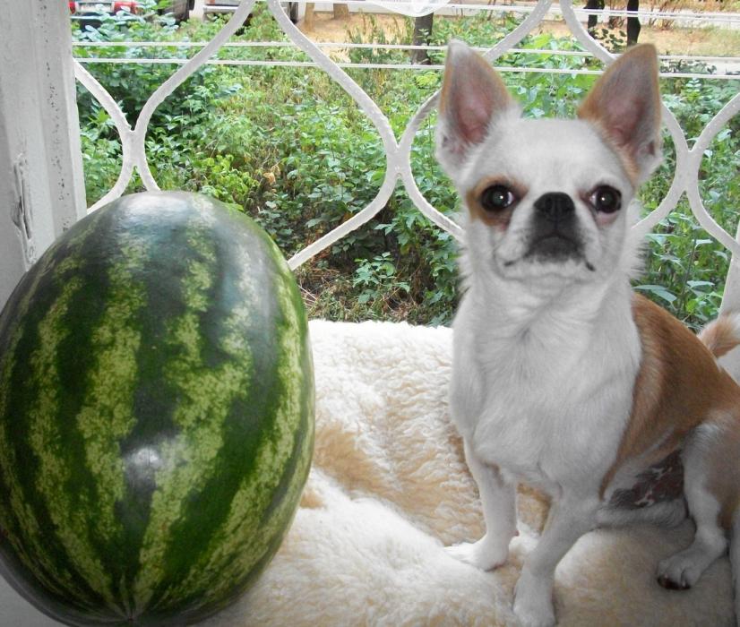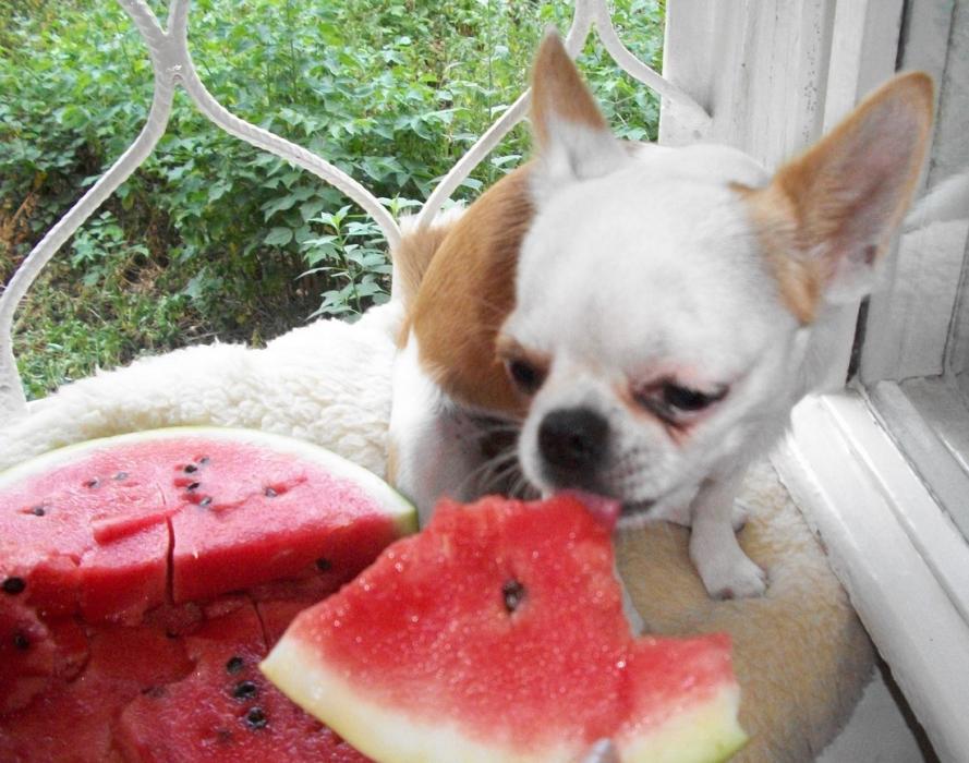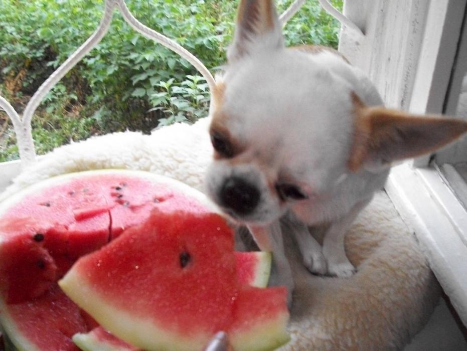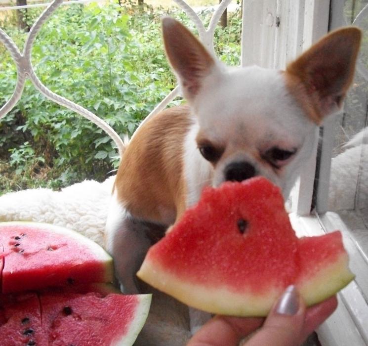 У всех собики фрукты уважают, а мой Тимоха хищник блин, мясо бы ему только давали, вот арбуз сегодня только лизнул пару раз и всё...:smile: