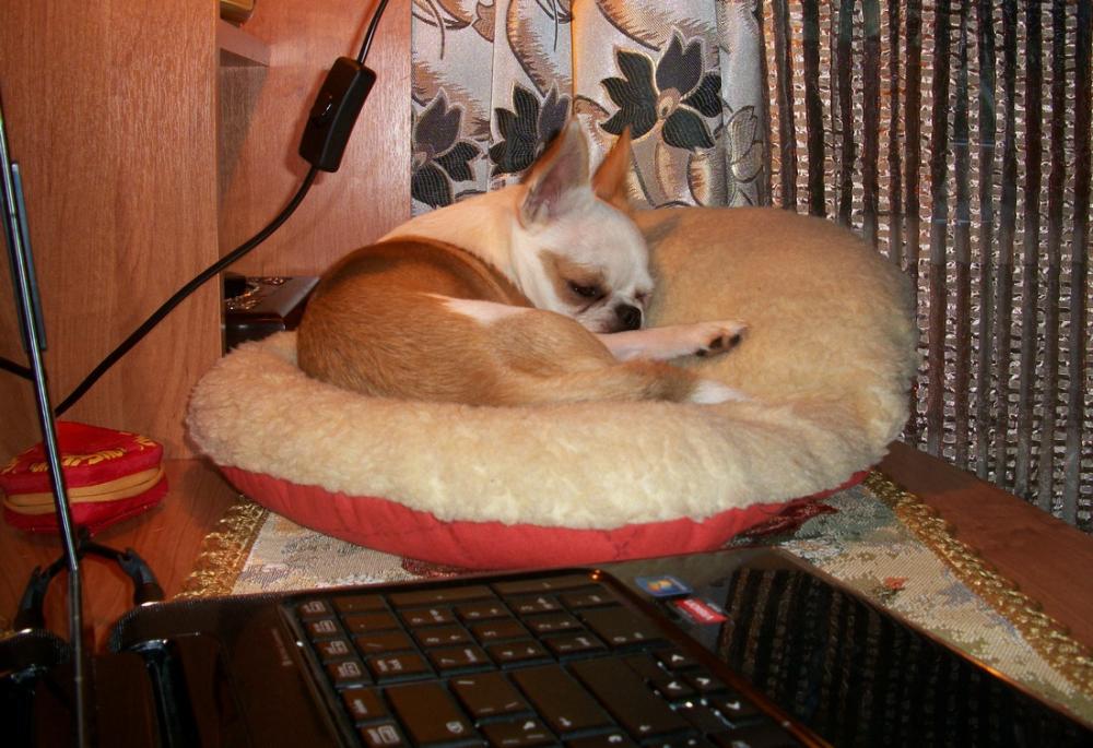 В последнее время любимым местом стал мой стол, я по вечерам за компом сижу, а Тимоха рядом на подстилке сопит...:wink:
