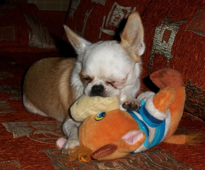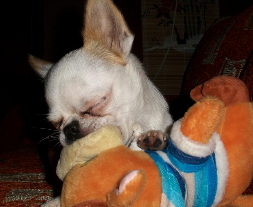 А если серьезно, то и правда сосёт нос у игрушки как щенок сиську у мамки...в детство что-ли начинает впадать...:smile: