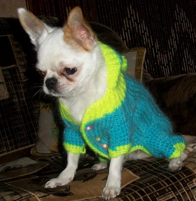 У моей подруги мини йорк,накупили они ему одежды всякой,а он во всем ходить отказывается,кроме моего свитерка,который я ему из мохрового носка вырезала на даче. И спит в нем, и ест,прямо сроднился и никакой ему дорогой и красивой одежи не надо![]()
