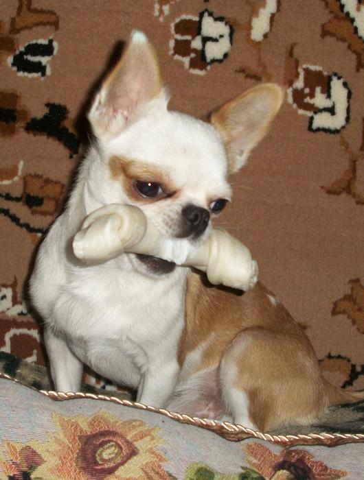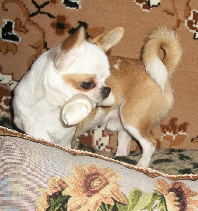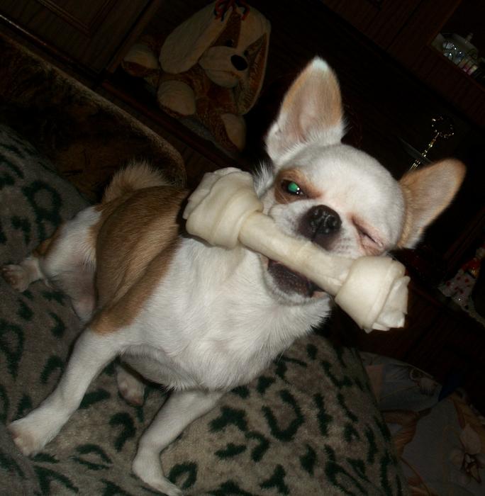 Тимоха с новой погрызухой мается весь вечер, не знает куда заныкать, чтобы не умыкнули...
