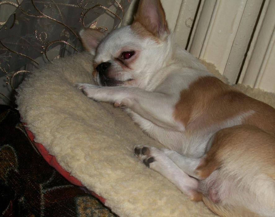А это любимое Тимохино место - на пуфике у батареи, часами там может спать, приходит оттуда весь горяченький как пирожок...:smile: