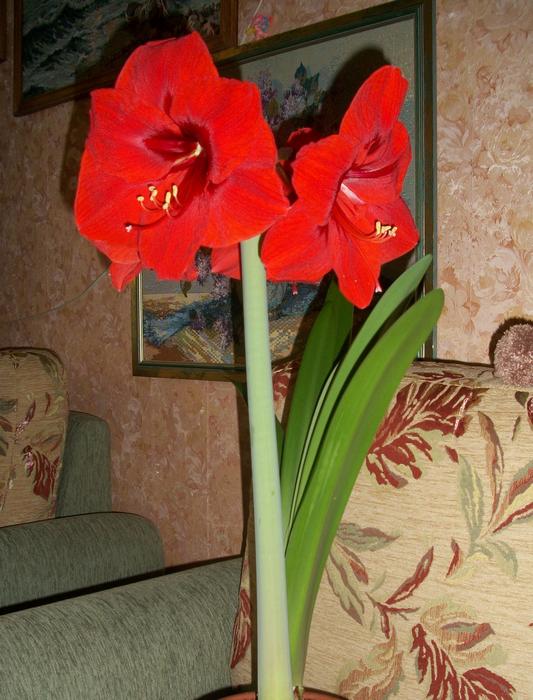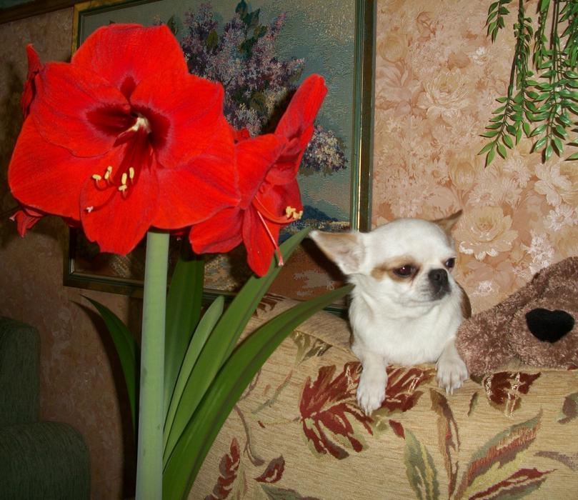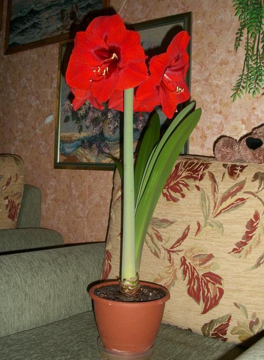 Ну вот, ждали мы наш любимый амариллис к 8 Марта, поливали тёплой водой, а вот расцвёл только вчера, ну уж лучше поздно чем никогда...:wink: