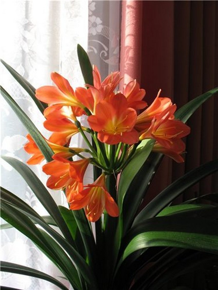 Последний раз она у нас цвела лет пять или шесть назад, я насчитала тогда 18 бутонов. Но потом сильно разрослась в горшке, настреляла деток, кливия из семейства луковичных, и я её "разодрала" на несколько. Видимо повредила главную луковицу, и вот она так долго перебаливала. И вот в этом году решила порадовать, я случайно заметила, когда поливала. Но пока неясно сильно ли будет цвести, стрелка только наклюнулась.:smile: