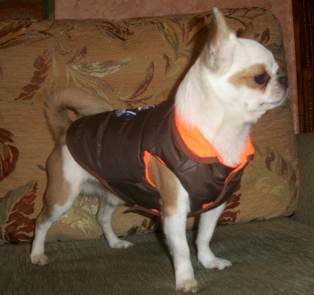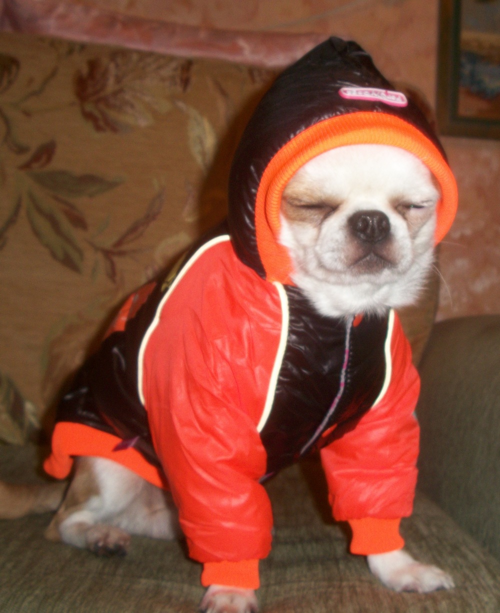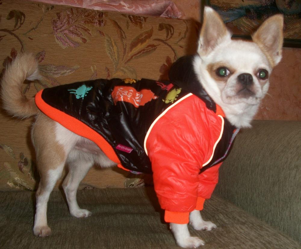 Хвастаемся обновой, готовимся к холодам, Тимоха как всегда не в восторге, ну это сначала, потом не снимешь.:smile: Самое главное спинку всю до хвостика прикрывает, теплая, мягкая и совсем невесомая.:wink:
