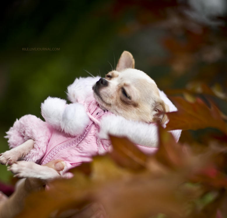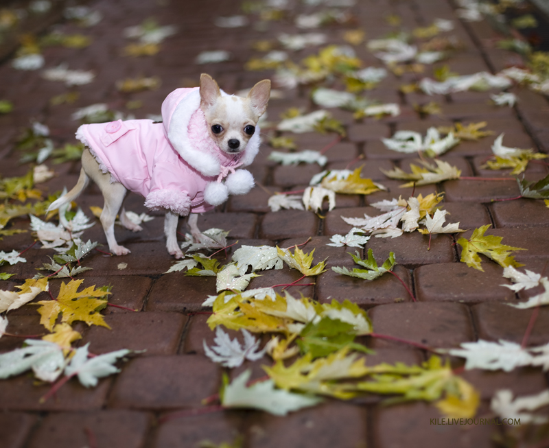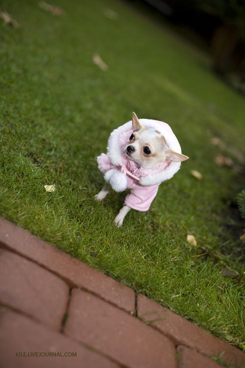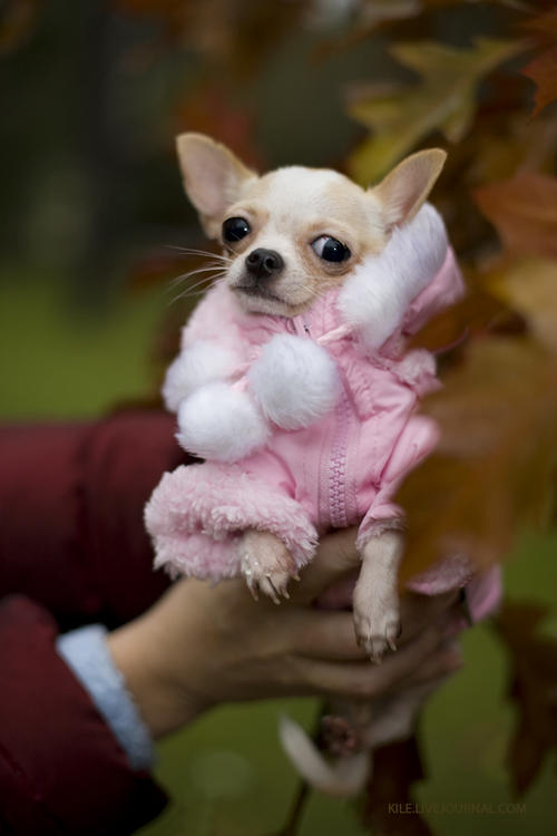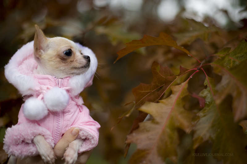 А для гуляния достаточно иметь теплый свитер(толстый,как деревенская вязка) ну или попону утепленную,на синтепоне или на меху-благо сейчас всего полно,а на маленьких собак особенно! Думаю,собачке понравится путешествовать с Вами куда-нбудь в сумке.Можно туда положить какое-нибудь одеяльце маленькое,самой смастерить или купить,можно приспособить для этой цели шарф.
