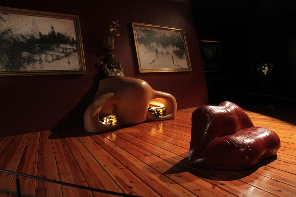 А вот этот зал, напротив, вызвал у меня приятные чувства. Это зал Мэй Уэст! При входе висит фото-портрет этой американской актрисы, но только оказавшись внутри, понимаешь, что вся комната, вся мебель и картины-это, собственно, лицо самой Мэй Уэст!