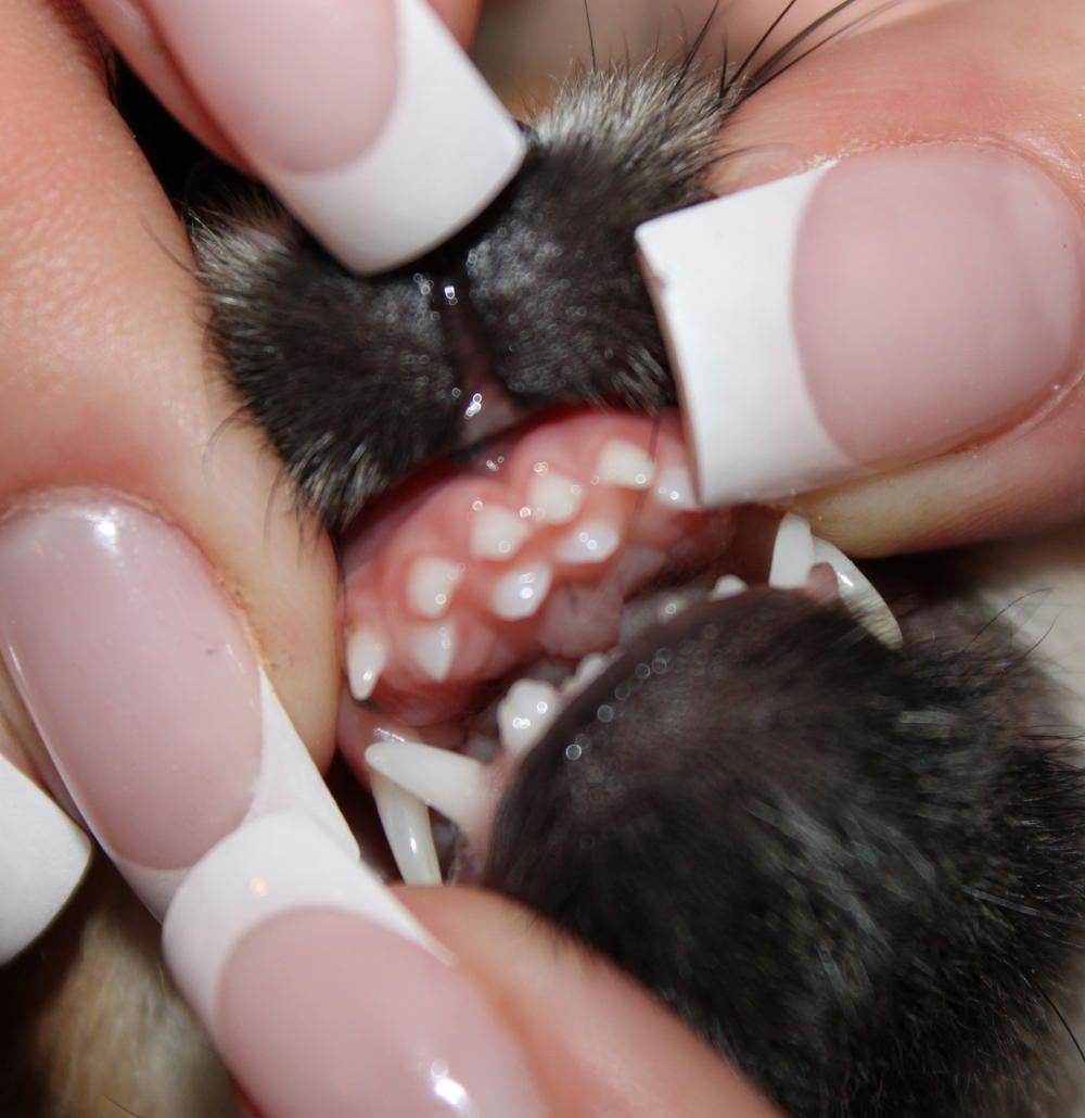 Спасибо за совет! Передние, молочные еле-еле шатаются при воздействии на них. И ещё задние клыки по два уже ростут. Лиска из-з них постоянно чванькает, прижёвывает, словно, во рту вкусняха заныкана.