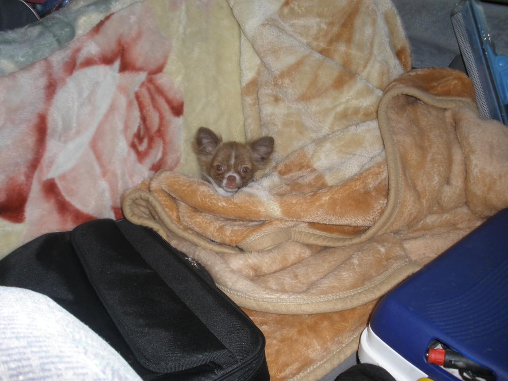 приехали домой родители и скинули мне фото Плюшика в дороге :smile: