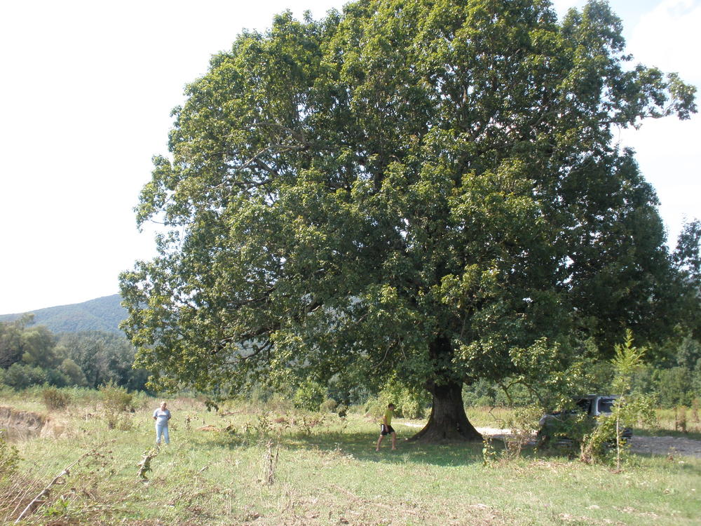 Женечка, у нас таких деревьев в Волгоградской области - тьма тьмущая. Есть такие дубы, что можно только впятером-шестером обхватить! Некоторые экземплярчики насчитывают не одну сотню лет. Как-то была в одном месте, и местный егерь показывал дерево, которому якобы 1000 лет.:wink: Но ваше дерево тоже красивое!