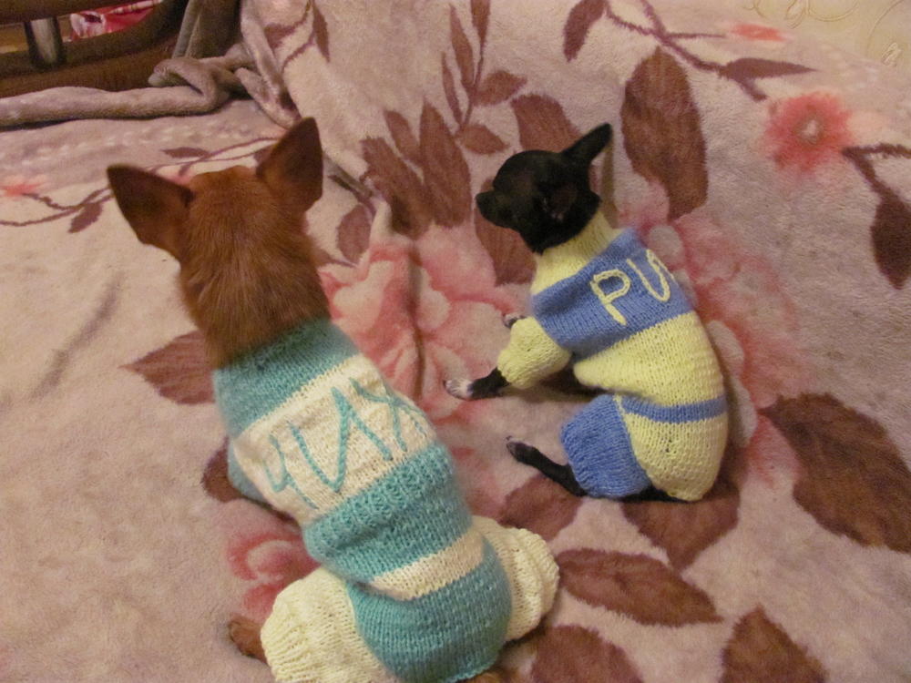 Танюш - класс!!!! Ты мне скажи, а вот те места, в которых лапки одеваешь, им не мешают ходить? Я тоже вязала, но как-то неудобно им было.