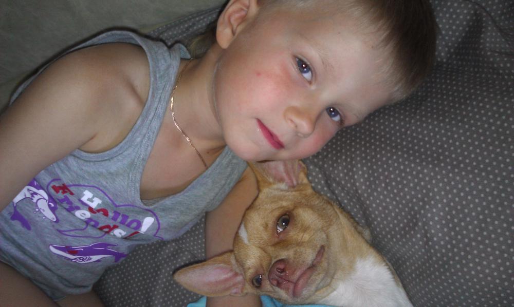 Было это где-то месяцев 5 - 5,5 назад. Дошло до того, что сынуля дома игрушечную собаку на нитку сажал, в крышки от баночек воду наливал и хлебушек ложил))))) "Мам, хочу собак, не могу!" Неделю было такое уж совсем сильное "хотенье", еще неделю искали, потом поехали к одной тётеньке, там были Лилу и еще одна беленькая девочка. Лилу сразу подбежала к сынуле, облизала всего, и больше от него не отходила. Вот! А говорят, что чихуа не очень детей любят. У нас любофффф!