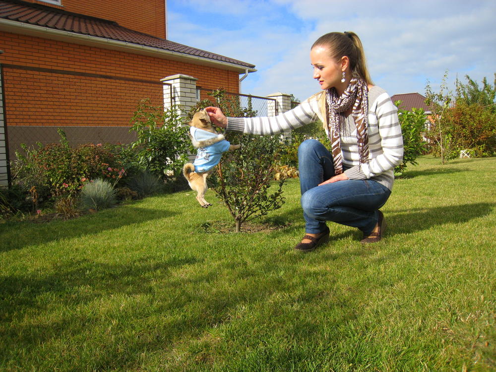 Спасибки! Да, удачная получилась фотка в прыжке!Так ему хотелось укусить яблочко ) Попрыгунчик!И вообще выхи получились очень насыщенные, а для Бандика- особенно, отсыпался на след. день после длительного загула на свежем воздухе!Зато, конечно, море удовольствия!И прыгали, и скакали, и бегали! Ага, газончик еще зелененький, радует глаз осенью!