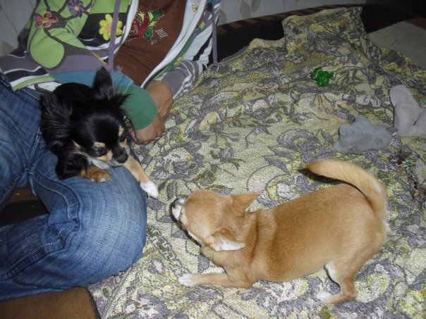 К нам сегодня в гости приезжала Женя с Жози.Вот девчонки опять отрывались.Жозька натусилась с Лелькой.А еще Лелька устроила мне сегодня банный день.:laughing:Вообщем мы с Женей решили съездить в магазин,Лельку я взяла с собой.Но вот одно обстоятельство упустила-перед выходом девчонки наигрались ,ну и естественно напились воды.а вот погулять с Лелишной я решила на обратном пути.но Лелик решила по другому.только мы вышли из магазина.только сели в машину.лелька забралась тут же повыше(она вообще любит ездить на плече,только тронулись-сижу чувствую чего-то тепленько стало-бах а это лелька на меня писает и так не хило писает-вообщем помыла мамку основательно-насквозь все мокрое было,жененой машине тоже досталось.Женечка мы еще раз перед тобой извиняемся.очень неудобно получилось.:net:
