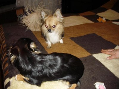 Да,хвост у него шикарный,а вот поведение совсем ужасное!!! За терроризировал бедную Лелю... она уползла к Тене на шею.