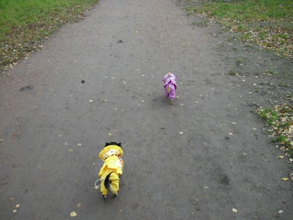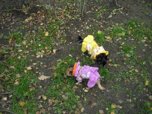 Давно мы не показывались на страничке,еле откопала нашу темку))).Сегодня погода позволила погулять нормально и я сделала несколько фоток с прогулки,Хотя фоткать и смотреть за двумя собаками конечно сложнова-то.Мы сегодня расслабились и гуляли без поводков,вроде нормально,без эксцессов.Лелька зато погоняла голубей вдоволь.Заодно умазали новый желтый костюмчик,как же без этого :laughing: