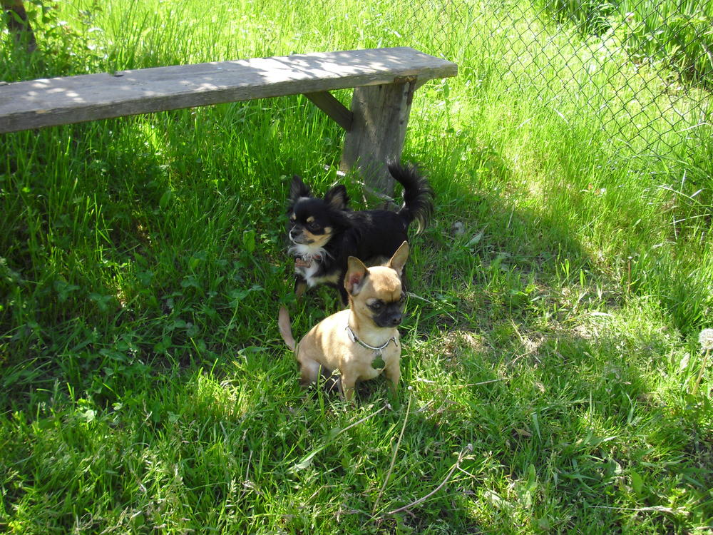 Были на даче,к сожалению фотик взяла разряженный и почти ничего снять не успела,но одно фото есть,зато выразительное очень)))Гуля-охранник)А видео небольшое в контакт кинула.