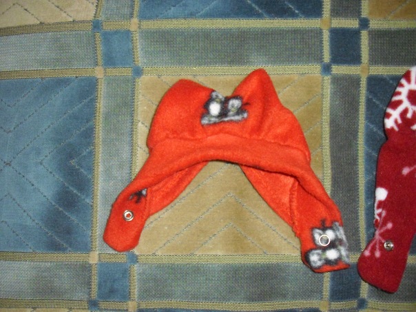 Девочки,ушко мы вылечили-но теперь на улицу только в шапочке будем ходить-ушки нам надо беречь ,а то у нас такие ураганища задувают последнее время.Вот навояла в ночи такие смешные шапки)))