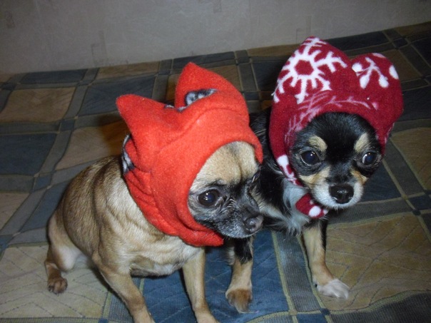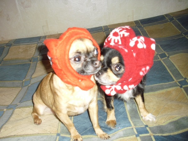 Таня , какая прелесть, "красные шапочки". Такие смешные моськи в них, молодец, интересный фасончик придумала . Как они на голове держаться, не слетают, а девчонки как, не очень сопротивляются. Мой бы "козлик" взбрыкнул, с места не сдвинулся :smile:)