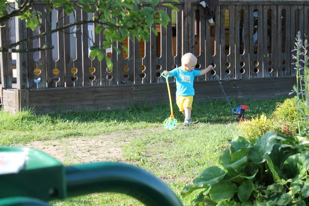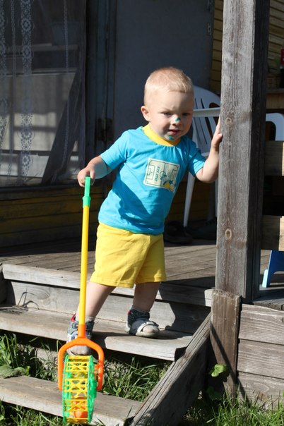 Сынулька-ураган-просто и не скажешь по другому-ни минуты покоя даже наверное ни секунды.Вот это фото в зеленке наверное о многом скажет :laughing: Это мы за два дня так украсились-сначала носом в машинку упал,потом на второй день покоцал подбородок о трактор.А вообще он целый редко ходит-вернее он вообще не ходит-он носится-у него просто нереальной длины шило.:laughing: так что покой мне теперь только снится.:wink: