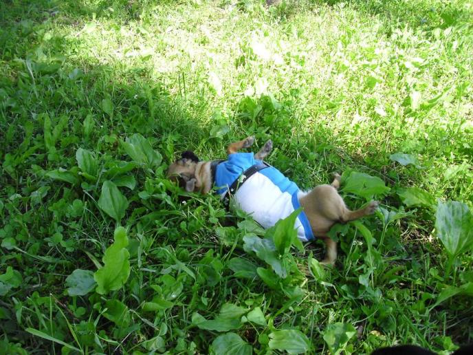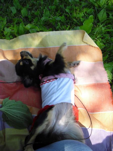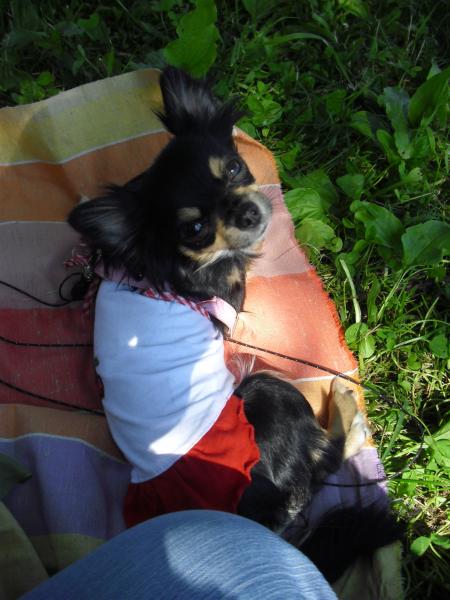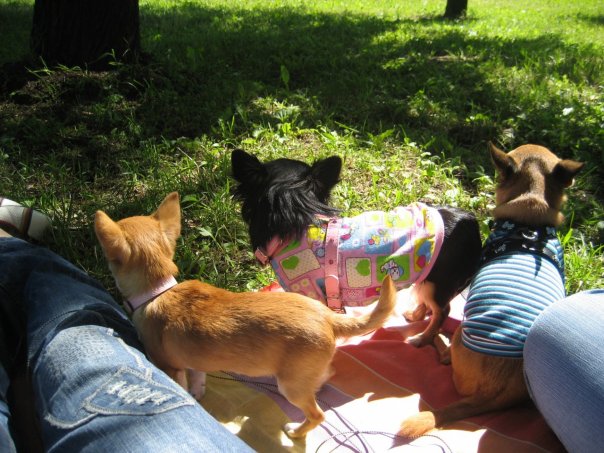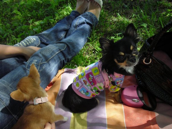 Мы вчера опять встречались с Женечкой и Жозькой!Каждый раз испытываю море положительных эмоций от этого ребятенка.Вчера немного погуляли в нашем местном парке.Жозька как всегда приставала ко всем прохожим собакам-просто маленький комочек положительной энергии.один раз даже удрала знакомится со щенком овчарки,тоже маленьким,но раз в десять крупнее Жозьки.Мои же девахи ходили чинно,как всегда.Вот несколько фоток наших посиделок в тени деревьев.
