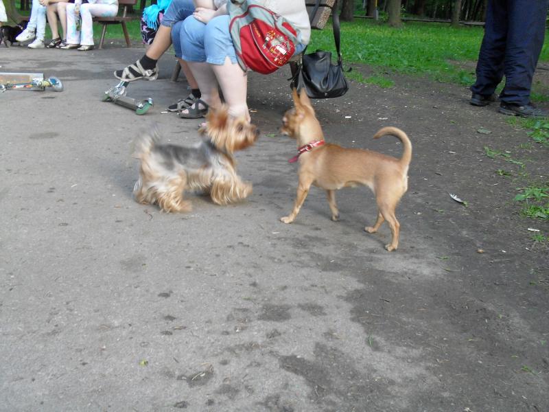 1) Клепа и Жужа( минюшка-просто прелесть); 2)не понревилась нам эта девочка йорка, почему-не понятно...но всю прогулку Клепа ее гоняла;3)в кафе; 4)Жужа; 5) вот так мы жуем траву...