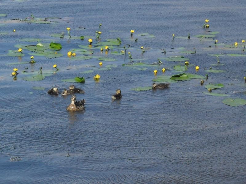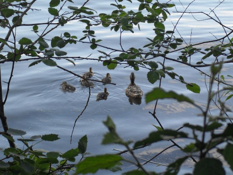 Гуляли у нас в парке на ул. Свободы. Там нашли уточку в кустах, оказывается она там утяток своих собирала в кучу. Потом они уплыли к кувшинка по-ближе и задремали на солнышке.:grinning:ardon::F8: