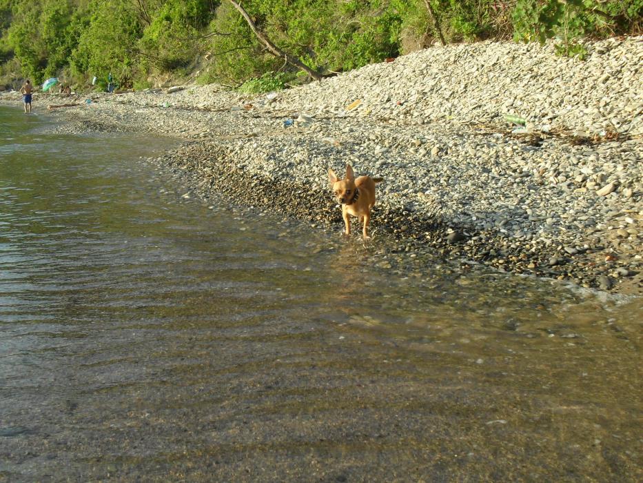 Привет наши родные! Мы ужасно соскучились по вам!!! А новости у нас такие.... Мы переехали в Краснодар. У мужа командировка не меньше, чем на пол года. Пришлось и мне уволиться с работы! Клепа конечно вместе с мамой и папой. Вот приехали, день пожили в гостинице, а потом махнули на наше любимое море. Прожили там аж 2,5 недели. Теперь здесь, в Краснодаре. Муж на работе, я в квартире(временно предоставленной его начальством), сегодня и мое собеседование. Как, что расскажу позже! Выкладываю фото Клепы на юге России! На морюшке! И еще, у нас ведь есть форумчане с Краснодара, мне очень нужна помощь по зоомагазинам, так, как в улицах я еще не ориентируюсь!:wink: