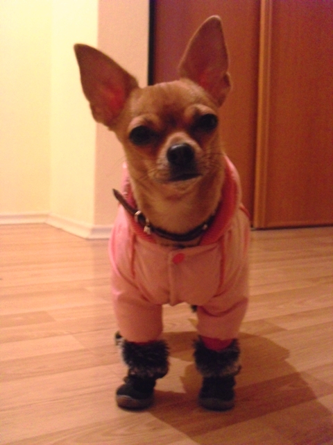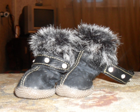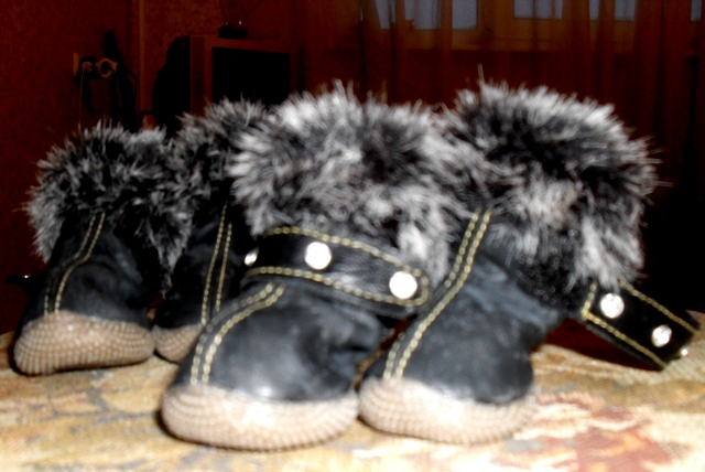 Всем привет! Вот мы и дождались, наконец-то, долгожданный подарочек! И мы ему так рады!!! ЭТО БОТИНОЧКИ!!! А вчера мы в них уже гуляли. Правда непривычно было, но Клепа справилась, умница моя! И, как одна ножка осталась без ботика и Клео наступила на снег голой ножко, сразу поняла, что в них теплее!!! Хвастаемся!