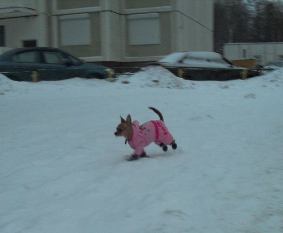 мне тоже мой энерджайзер спать не дал! всю облизал и притащил свои тапки...на улицу идти...я так удивлена ему так нравиться снег))) бегает беситься,только скучно...вокруг одни большие собаки...мы тут недавно с далматинцем познакомились (моя мечта детства) Никки как увидел что-то большое бежит к нему он пулей ко мне на руки запрыгнул...пообщались понюхались и пошли гулять в разные стороны...по размерам не походим(