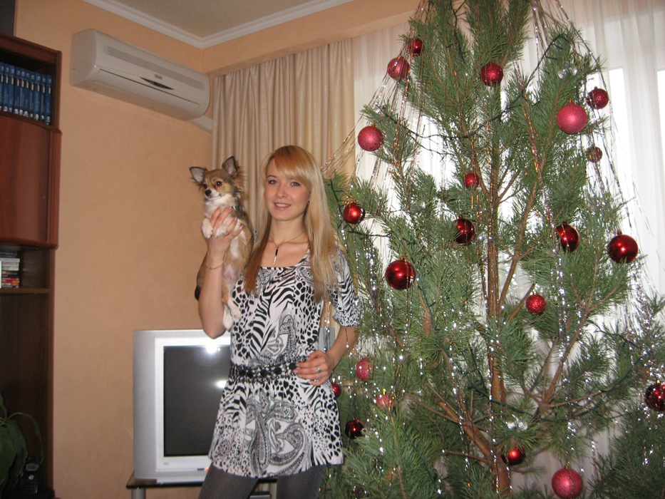 Хорошо у нас елка маленькая, на столике стоит, а то боюсь, мои собики бы тоже ее облюбовали)))):laughing: