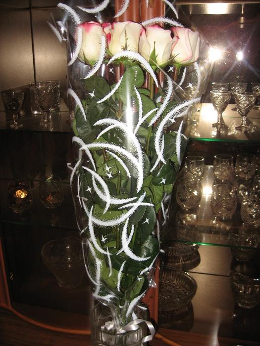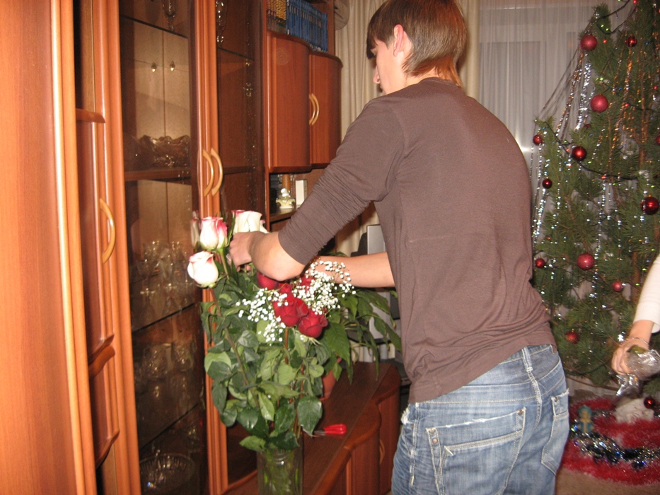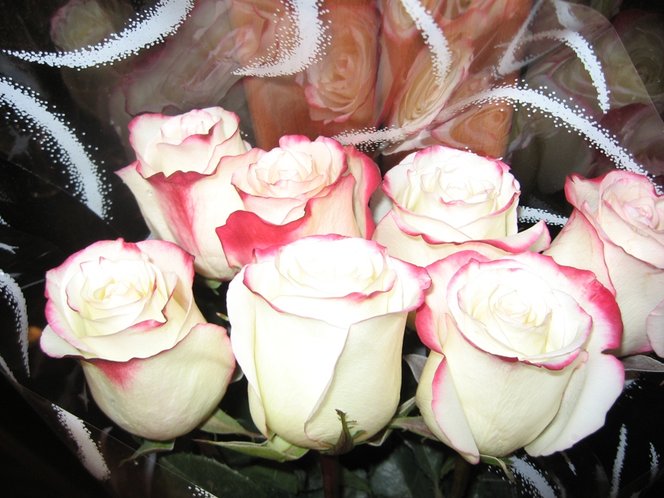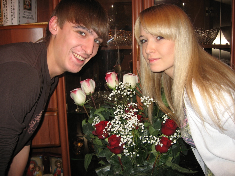 Букет красивых бело-розовых роз с утра подарил муж,а вечером пришел с букетом красных роз молодой человек моей дочери.