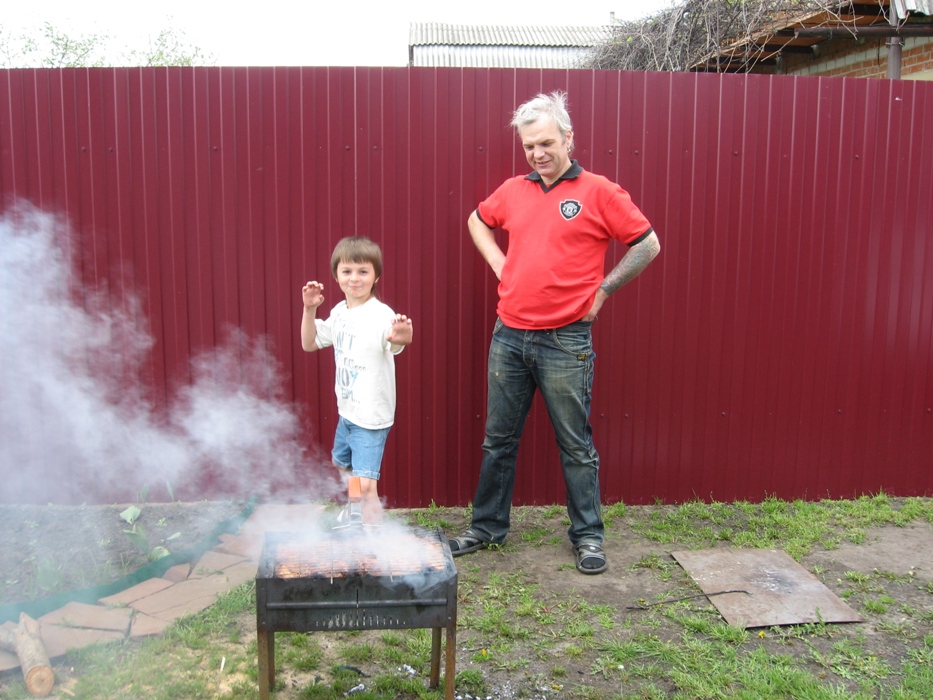 На 9 мая к нам гости приезжали и мы делали шашлык=))) Мальчика зоут Арсений,мужчина в красном (Гуру) его папа и блондинка с короткой стрижкой их мама и жена. Остальное мы=))