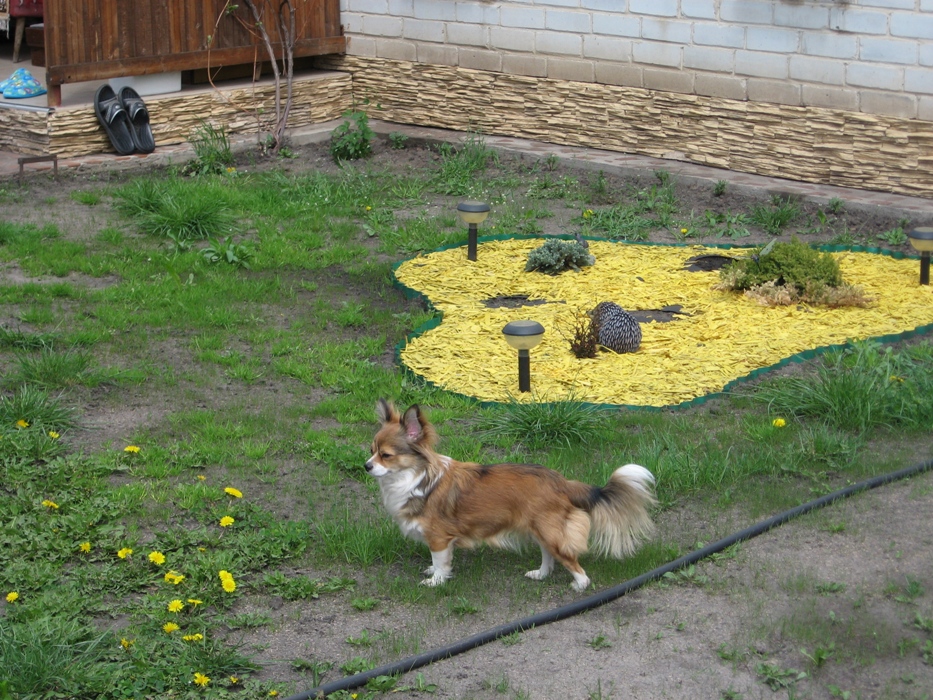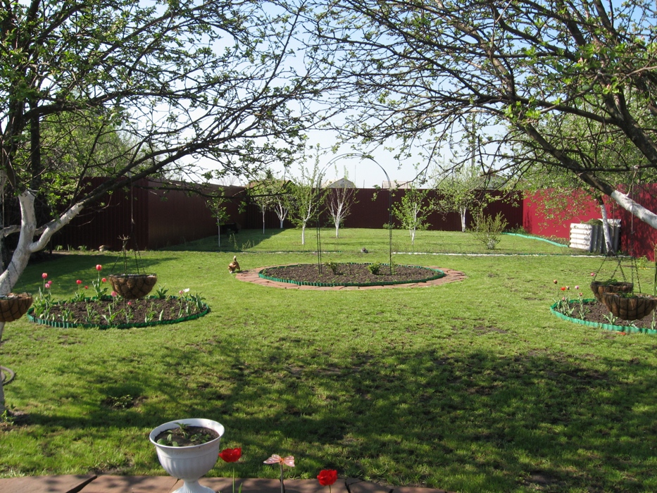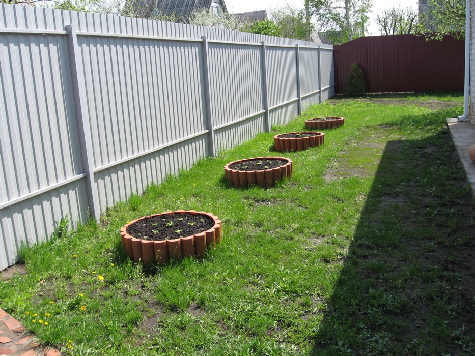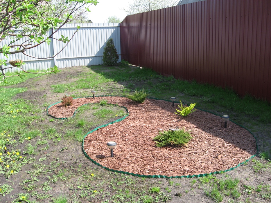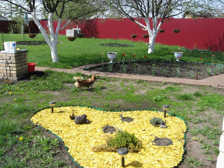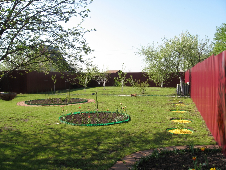 В белых полосах засыпанных мрамором два дня назад посажена живая изгородь из кизильника блестящего=)) На следующей год в зоне сада за этой изгородью планируется строительство беседки большой и вместительной и разбивка каменного сада.