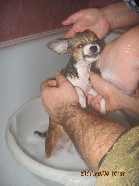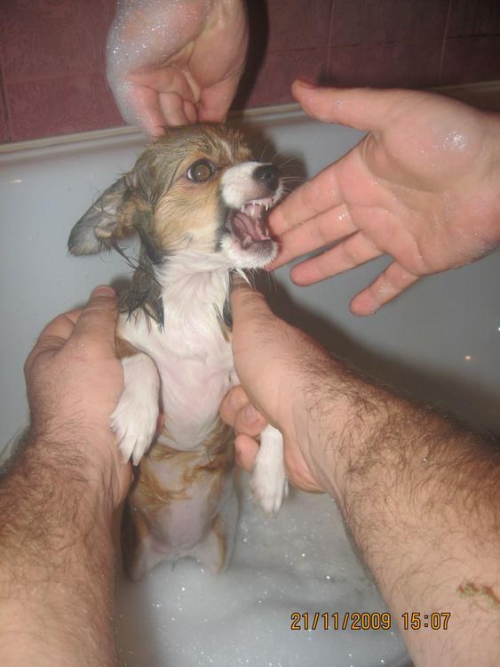 Соня очень умная собака,но с характером.Она ласковая,игривая и большая приставала,старается больше времени проводить у нас на руках,но если нужно смело отстаивает свои позиции,если ей не нравиться купаться,то она будет кусаться. С ней запрещены игры с участием пустых рук,начинает баловаться и тоже пытается ухватить зубами. Мне сложно сказать перерастёт это поведение или нет,она у нас первая соба. Раньше мы не могли носить тапочки,ругали её за то что она их воровала и грызла,сейчас стало немного лучше,реже варует. Но до сих пор ест цветы те что стоят на полу в горшках на ножках,война продолжается. И её всегда очень тяжело поймать,она считает что мы с ней играем,в результате нужно пол квартиры пробегать чтобы взять Соню на руки. Очень игрива.
