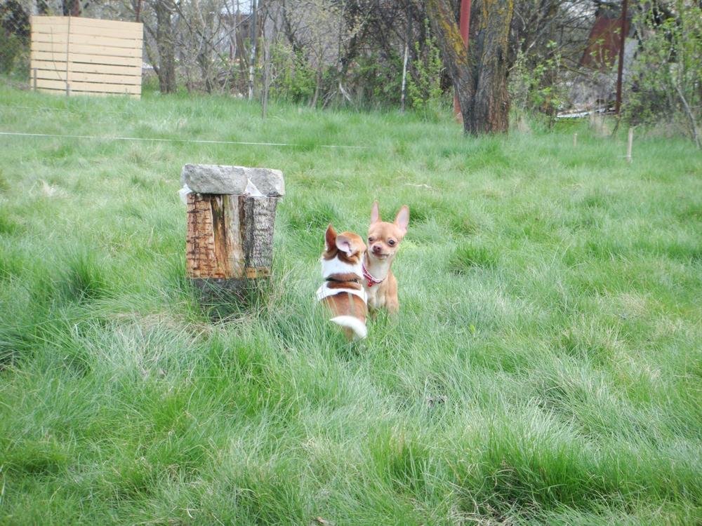 кстати это наш первый опыт общения с чихами)))в большом количестве конечно...весь день вместе провели...весело они отдыхали,разработали план побега с дачи...наказали сидели в соседних комнатах жаловались друг другу:laughing: