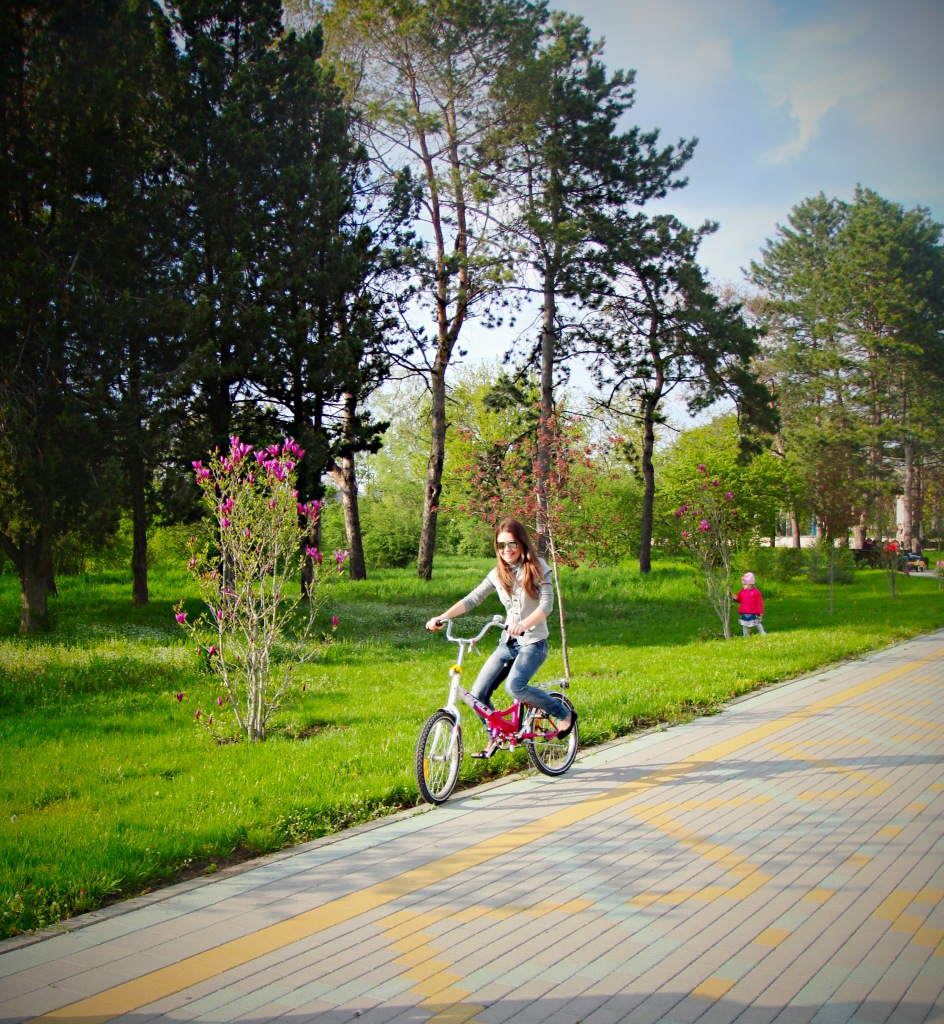 ах да забыла рассказать)))еще в апреле у нас был теплый денек...и у нас есть парк Дендрарий...мы там очень любим гулять...весь день там провели)))я на велосипеде а Никки рядом и так мы спортом занималась) было так забавно...соревнования были кто быстрей,иногда Ник финишировал первым...и еще там гуляла маленькая девочка йорка) хоть он их и не любит (йорков) эта ему явно понравилась...но как она перед ним выделывалась