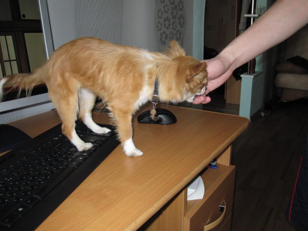 в гостях хорошо можно поиграть на компьютере выгнать хозяина с кровати и стащить печенье!!! и за все это я так люблю мамулю что целую ее при каждой возможности :wink: (чтоб все знали эта девушка со мной:clapping::lloovve:smile: