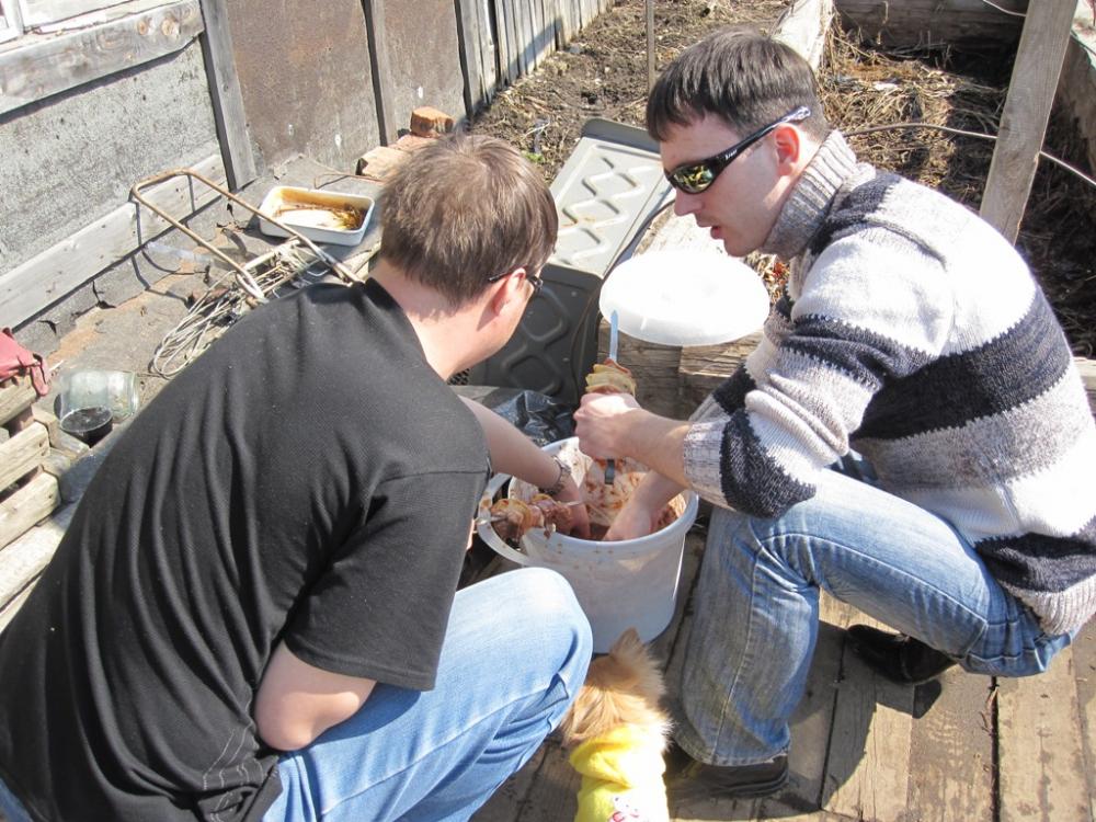 2 Проследить чтоб они мясо на шампура правильно накалывали (хотя по мне я бы и без приправ и жарки слопал)