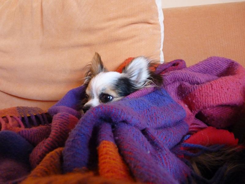 Я давно писала на форуме про нашу проблему - Гошан живет на кровати. (тема называется: Чихуахуа и кровать, паркет..) У нас ламинат и ему не нравится по нему ходить - панический страх. Долго мы боролись с его фобией. и решили сдаться - муж принес сегодня ковер! Я против ковров всегда была, но пришлось купить, чтобы соба не мучалась. Гоша ковер облаял сначала, не понял, что это за свернутая труба:tearsofjoy: Расстелили, он прошелся по нему, понюхал. Через час я наблюдала картину: Гоша лежит на ковре, потом встал, походил вокруг, сел, посидел немного, пошел дальше, сел в другом месте, и так обследовал весь ковер. :dancers: В общем, я надеюсь, проблему мы частично решили....