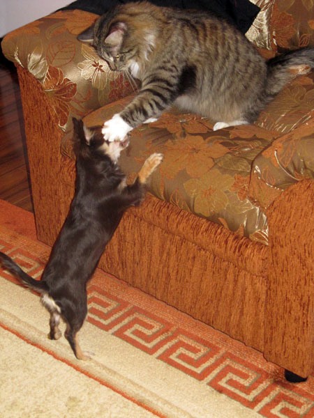 Любим очень полаять на что нибудь не понятное (на стенку например), иногда защищаем дом от малознакомых людей и при этом боимся их...