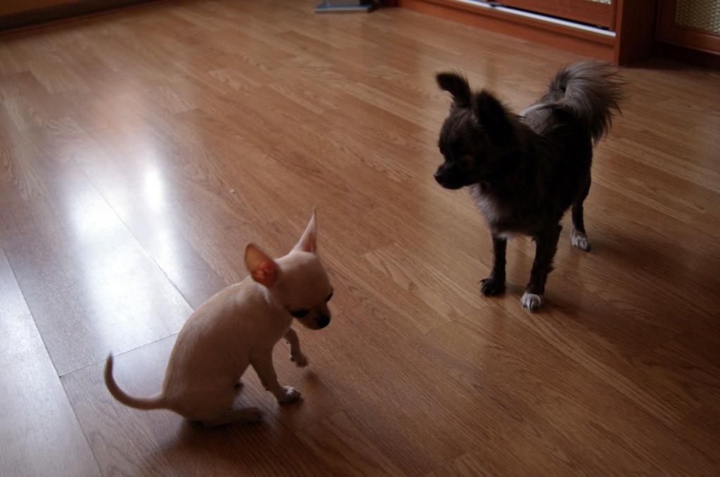 Молодец Кокетка, быстро освоилась! Да и Юма не подкачала - играет с мелкой. :)