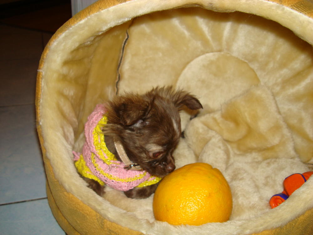 Неудачная попытка дрессировки. Вкусняшка была стырена сразу -и наша красавица гордо ушла на место ее хомячить:wink: