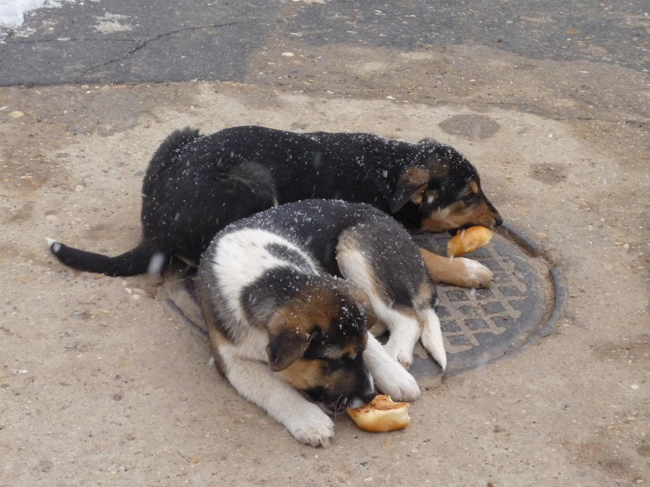 Очень хорошие фотки! Собачки на люке.... такую грусть навеяли... холодно, греются!