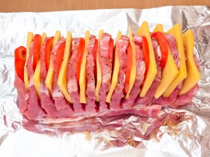 В куске свинины сделать надрезы (не доходя до конца), толщиной около 1 см. (фото 1)